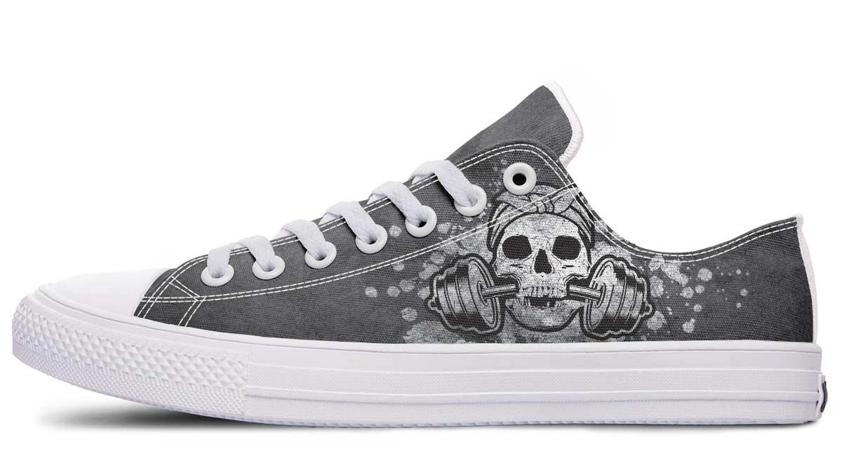 Elevate your footwear game with the Lady Skull Gym Tattoo White Lowtop Sneaker. Designed for both fashion and function, these sneakers feature a bold skull tattoo print, making them a standout choice for any casual or gym outfit. The low-top design ensures comfort and flexibility, while the durable construction provides long-lasting wear. Perfect for those who love a touch of edgy style in their everyday or workout wardrobe. Step into confidence with these unique sneakers!