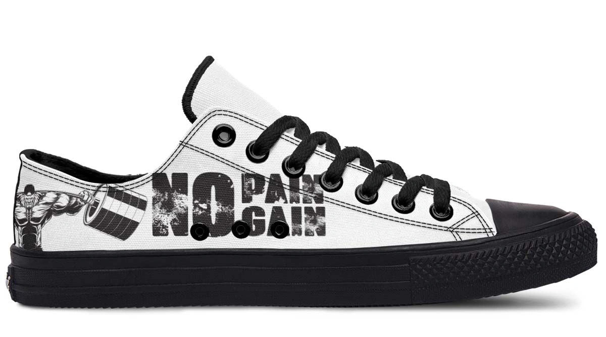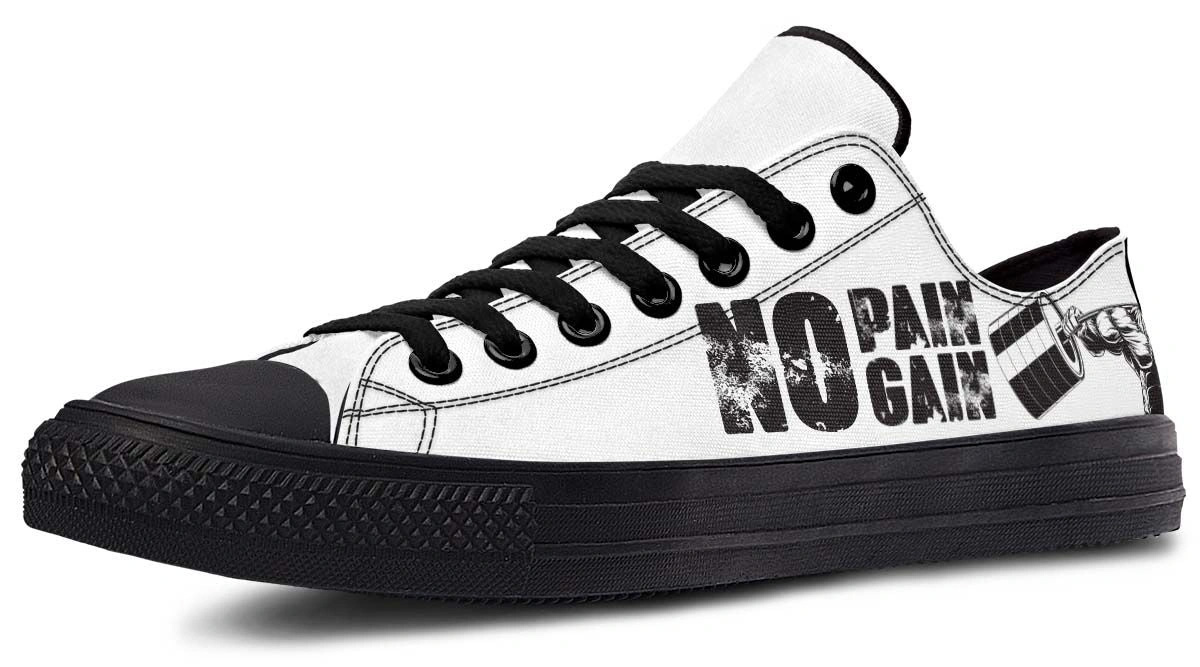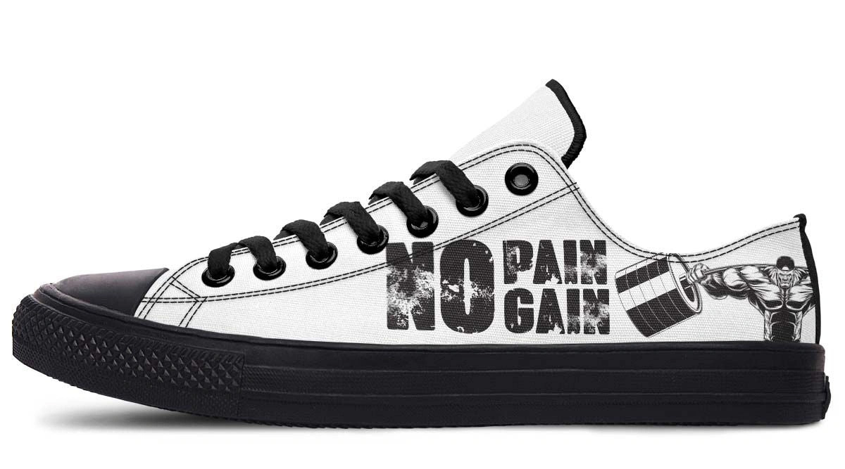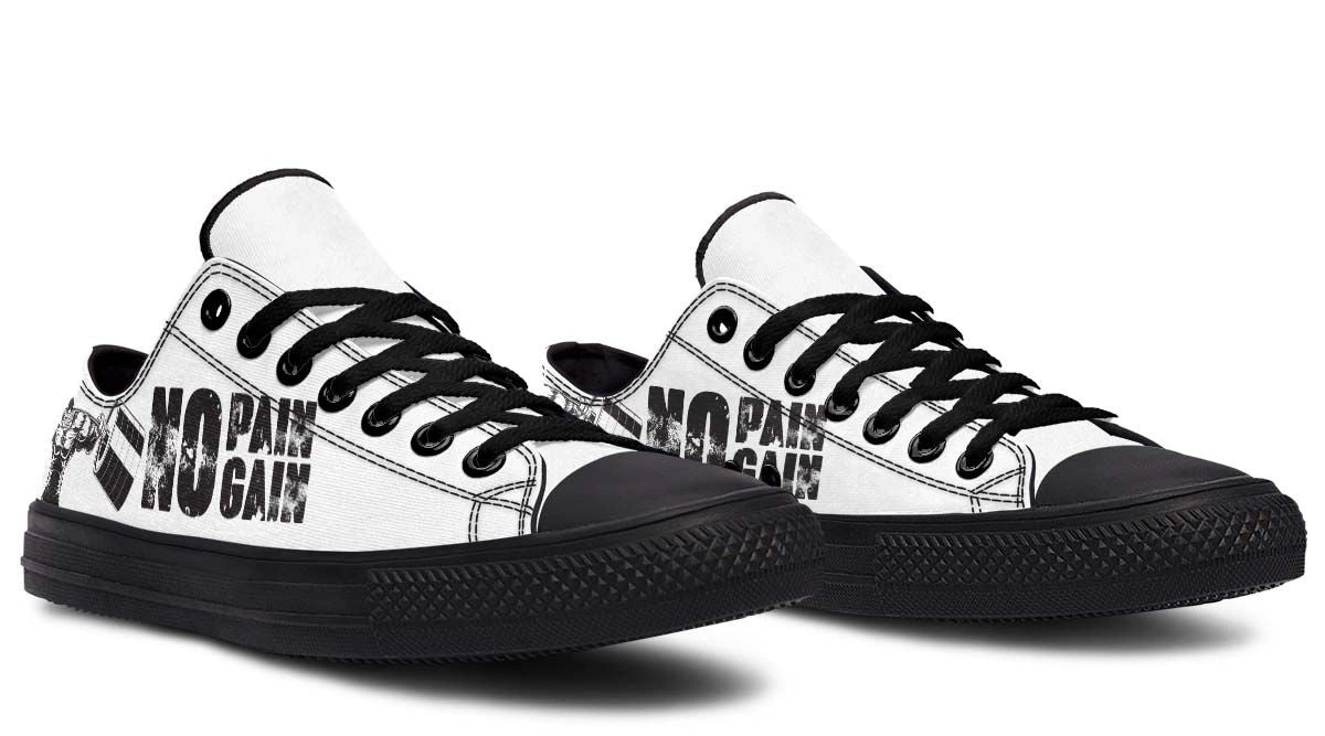 Elevate your footwear game with the “No Pain No Gain” White Black Lowtop Sneaker. Designed for both comfort and style, these sneakers feature a sleek white and black colorway, making them versatile for casual outings or workouts. The low-top design ensures ease of movement, while the durable construction promises long-lasting wear. Whether you’re hitting the gym or the streets, these sneakers are your go-to choice for a bold, fashionable statement. Step into confidence order yours